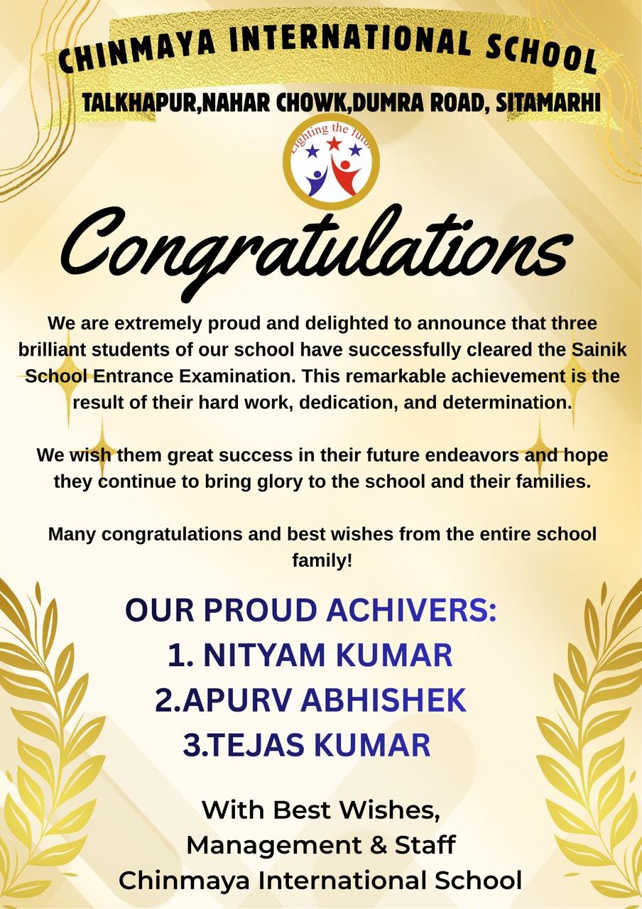 Are you looking for a CBSE school ? In a setting different from their families, children learn to fulfil all their scholastic dreams at Chinmaya International School, situated at Talkhapur in Sitamarhi – the birthplace of Goddess Sita.